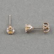Paar 14kt witgouden solitairoorstekers, gezet met briljantgeslepen diamant, circa 0.10ct, brutogewicht 0,6 gram -één poussette ontbreekt-