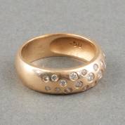 14kt gouden bandring gezet met 24 briljantgeslepen diamanten in diverse groottes, circa 0.50ct, meesterteken: M.D., mt. 17,5, brutogewicht 5,6 gram