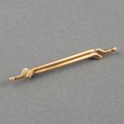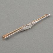 14kt gouden staafbroche, de uiteinden gezet met achtkantgeslepen diamantje, brutogewicht 3,0 gram, 6,5 cm