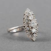 18kt witgouden markiesring gezet met negentien briljantgeslepen diamanten, middensteen circa 0.20ct, totaal circa 1.20ct, mt. 17,25, brutogewicht 5,2 gram