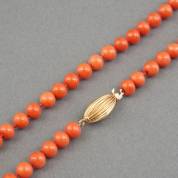 Bloedkoralen kralencollier aan 14kt gouden olijfvormig bakslot, 118 cm