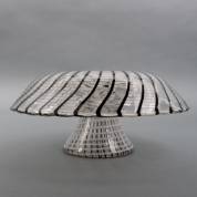 Andries Dirck copier (1901-1991) en Lino Tagliapietra (1934), vrij geblazen vaas met grote omgeslagen rand en lijnendecor in wit en zwart, genummerd F31 en 81-09-22, gesigneerd -volgrecht van toepassing-, 16 x Ø 35 cm