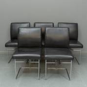 Vijf zwart lederen stoelen op verchroomd draadstalen onderstel, in stijl van Ernesto Radaelli/Saporiti, postmodernisme