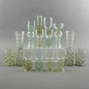 Verzameling lichtgroene glazen naar antiek voorbeeld, waaronder roemers met braamnoppen
