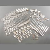 Verzilverd bestekgedeelte, Christofle, model Pompadour, bestaande uit: tien dinercouverts, twee extra vorken, twaalf dinermessen, twaalf dessertcouverts, twaalf dessertmessen, zes visvorken, twee vismessen, zes theelepels, vijftiendelig diencouvert, dinermes 25 cm