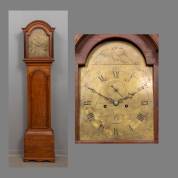 Engels staand horloge in eiken kast, de messing wijzerplaat met seconde- en datumaanduiding, gesigneerd John Draper, Maldon, 207 × 46 × 24 cm