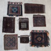 Acht Perzische tassen en tasfronten, alle Belouche -gebruikssporen-