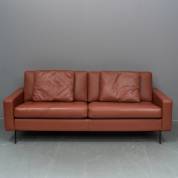 Bank met kastanjebruine lederen bekleding, op zwart metalen pootjes, uitvoering Cor, Duitsland, 74 × 205 × 85 cm
