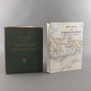 Twee boeken: Diessen, J.R. van F.J. Ormeling. 'Grote atlas van Nederlands Oost-Indië & Supplement'. Zierikzee, Utrecht, 2003-2004. 456, 28 pp. Zeer groot folio. Oorspr. linnen, geïllustreerd stofomslag in kartonnen beschermhoes. Met honderden kaarten en plattegronden in kleur, 49 × 35 cm; 'Atlas van Tropisch Nederland' (incl. Naamregister). 1938. Groot 4to. Oorspr. linnen -band licht versleten-