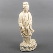 Blanc de Chine beeld in de vorm van Guanyin, Dehua-merk op de rug, 19e/20e eeuw -defecten-, hoogte 35 cm