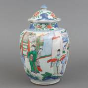 Chinees porseleinen wucai dekselvaas met figurendecor, 17e eeuw, hoogte 39 cm
