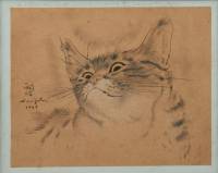 Tsuguharu Foujita (1886-1968), kattenportret, inkt op papier, l.m. gesigneerd en gedateerd 1933, met annotatie boven in de marge 'Stefan de Vriendt amical Souvenir [...] Foujita 1933' -volgrecht van toepassing-, 14,1 × 17,8 cm, herkomst: familie Stefan de Vriendt, met daarbij: foto van de kunstenaar en zijn vrouw Madeleine, verso met opschrift 'Ambassador Hotel [...] sept. 1934', één door de kunstenaar beschreven ansichtkaart gedateerd 1964, één boekje met dedicatie van de kunstenaar en diverse krantenknipsels