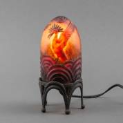 Pâte-de-verre kegelvormige lamp met reliëfdecor van badende kraanvogels, staand op bronzen onderstel, ontwerp en uitvoering Gabriel Argy-Rousseau, Frankrijk, jaren '20 -bedrading en fitting vernieuwd-, 20 × Ø 9 cm