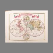 Atlas: Tirion - Nieuwe en beknopte hand-atlas ... van eenige der algemeenste en nodigste landkaarten; alle in de Nederduitsche taal en na de alderlaatste ontdekkingen van de L'Isle en anderen opgesteld. Amsterdam, I. Tirion, 1744 (= 1733-1761). Folio. Oude, versleten band (rug ontbreekt). Titel, register (2 pp.) en 115 kaarten (waarvan 4 gevouwen en als twee kaarten geteld). Mooie, complete atlas, de kaarten in de tijd gekleurd, op groot en dik papier, onafgesneden, 45 × 31 cm. Daarbij 4 andere, gevouwen kaarten