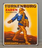Email reclamebord: Turkenburg Zaden Bloembollen', -centraal een stuk email verlies-, 96 × 79 cm